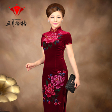 2016新款春夏真丝绒优雅修身显瘦复古手绘中长款旗袍中式连衣裙女