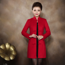 秋冬修身优雅日常唐装旗袍大衣羊毛呢外套长款女装
