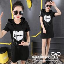 纯棉连帽亮片显瘦中长款连衣裙韩版2017夏装新款小香风打底裙女潮