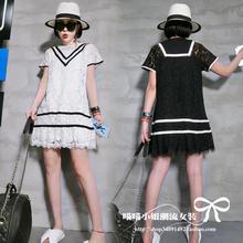 韩版2017夏装新款蕾丝显瘦中长款连衣裙女小香风休闲百搭打底裙女