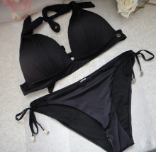 1-26C 欧美三色比基尼系带分体泳衣聚拢套装大小码泳衣