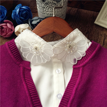 重工假领子女彩钻百搭秋冬季圆领花朵雪纺装饰大码甜美娃娃