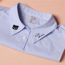 卡通字母刺绣假领子女纯棉秋冬百搭竖条纹蓝白色职业学院上班韩