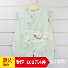 正品包邮*润心婴幼儿夏装宝宝无袖后开档纯棉布连体哈衣3-12个月