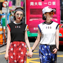 S家原创女装夏季2017新款欧美街头无袖上衣宽松短款镂空背心T恤