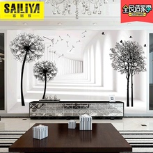 客厅电视背景墙壁纸 现代简约蒲公英墙纸 3d玄关壁画立体空间延伸
