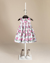 外贸女童装夏装新款中大童连衣裙背心裙纯棉花朵腰带圆领公主裙