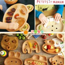 日本进口petits可爱卡通动物兔子熊猫大象汽车手工木制动物木餐盘