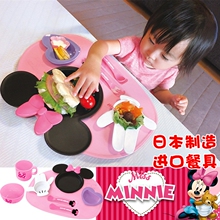 日本锦化成disney迪斯尼米妮宝宝儿童餐盘餐具套装勺叉子碗进口