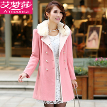2016秋冬韩版修身显瘦中长款双排扣毛领羊毛呢外套呢子大衣女装潮
