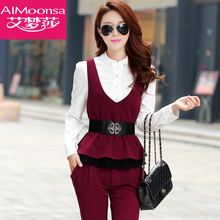 2017春装女士韩版名媛气质修身长裤两件套春季休闲时尚套装女装潮