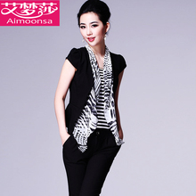 2017春夏女士气质修身显瘦雪纺衫上衣七分裤两件套休闲时尚套装潮