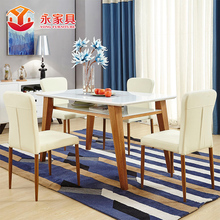 永家具餐台钢化玻璃烤漆水曲柳现代简约小户型餐桌椅组合一桌四椅