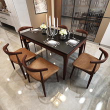 永家具火烧石餐桌 橡木实木大理石餐桌椅组合 北欧现代餐台