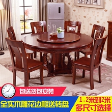 实木圆形餐桌中式雕花大圆桌带转盘饭店1.5/1.8米仿古餐桌椅组合