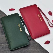 软牛皮新款双拉链真皮手包女式拉链钱夹手腕包 女士长款钱包