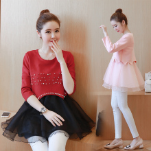 孕妇套装春装时尚款两件套2017新款孕妇蕾丝连衣裙+打底裤套装春