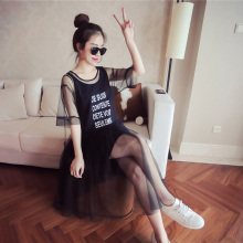 孕妇装夏装连衣裙短袖网纱裙子韩版时尚孕妇裙打底裙大码宽松中长