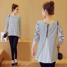 2017孕妇装套装春装条纹上衣+长裤托腹两件套韩版时尚孕妇套装