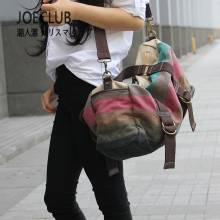 潮人滙韩版女包复古学生背包 斜挎包女士旅行 单肩背包帆布大包