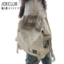 潮人滙新款女包 韩版机车学生复古大背包 旅行包厚帆布大双肩包包