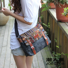 潮人汇新款中性邮差包帆布单肩包男女通用斜挎包民族风休闲小潮包