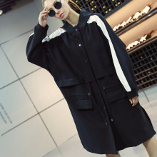 2017春装新款加肥加大码女装 胖mm宽松休闲显瘦长款连帽大衣外套