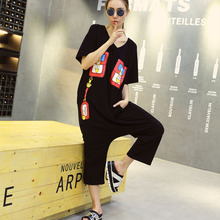 2017春夏新款加肥加大码女装 胖mm宽松短袖V领七分哈伦裤连体裤子