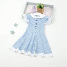 儿童节礼物2017女童夏装新款花边蝴蝶结全棉小格子淑女公主连衣裙