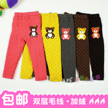 禾爱品牌童装 儿童男女童宝宝小熊图案冬季加绒毛线裤加厚打底裤