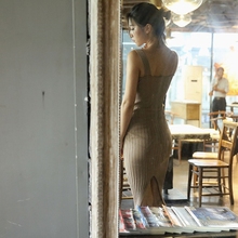 冰麻丝 ~2017北欧开叉中长款性感修身背心裙针织连衣裙晚晚同款女