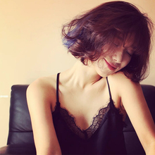 欧美夏季真丝性感打底衫蕾丝吊带背心女无袖宽松薄款短款上衣胸衣