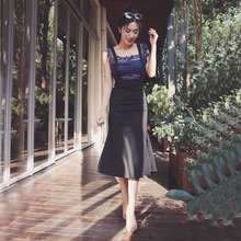 2017夏新款高腰显瘦复古连衣裙无袖吊带波点鱼尾裙修身包臀长裙女