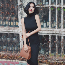 晚晚同款高领无袖长裤真丝羊毛针织连衣裙气质包臀中长款修身春秋