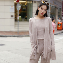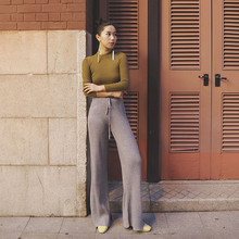 晚晚同款欧美宽松纯色复古羊毛针织裤高腰阔腿裤女春夏休闲长裤子