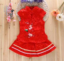 夏季女童唐装短袖衣裙六一 儿童节演出服喜庆生表演礼服两件套