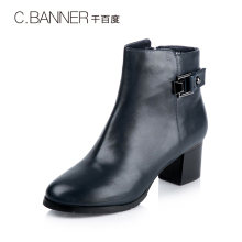 C.BANNER/千百度 冬季牛皮饰扣纯色高跟女靴A5524101