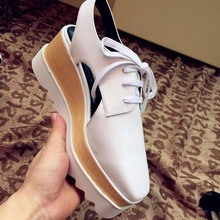 欧洲站春秋单鞋baby同款鞋星星松糕鞋厚底鞋方头高跟系带增高女鞋