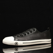 防水pu皮情侣帆布鞋男低帮纯色韩版男士潮流休闲鞋板鞋帆布男大码