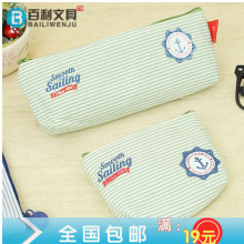 日韩系列文具 航海梦帆布条纹文具盒(笔袋 零钱包两款)