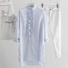 2017春季女装新款韩版小清新荷叶花边中长款条纹衬衫打底潮A83*