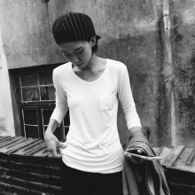 欧美风莫代尔打底衫女 纯色简约口袋宽松长袖圆领T恤2016秋装新款