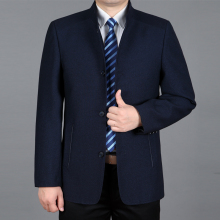 新款秋冬中年男装夹克毛呢外套加厚中老年人男士羊毛呢茄克爸爸装