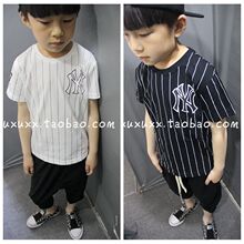 2017夏男童竖条纹短袖中大童竖条纹T恤