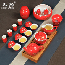 正扬陶瓷功夫茶具套装红釉金龙茶具 整套茶杯茶海泡茶器特价包邮