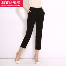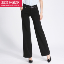 派文萨威尔2016春款OL通勤微喇女裤修身中腰长裤垂感休闲西裤大码