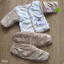 婴蓓乐秋冬款薄夹丝棉男女儿童三层保暖薄夹层空气棉宝宝内衣套装
