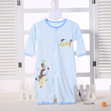 婴幼儿纯棉长袖薄哈衣 闭裆连体衣爬服 婴儿夏装长袖连体空调服