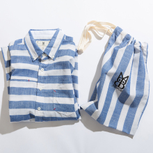Mbbcar原创欧美英伦摩登条纹复古衬衣 舒适免烫小清新皱布衬衫男