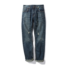 Mbbcar欧美西海岸潮男重磅已脱浆蓝牛赤耳丹宁洗水小脚牛仔裤男